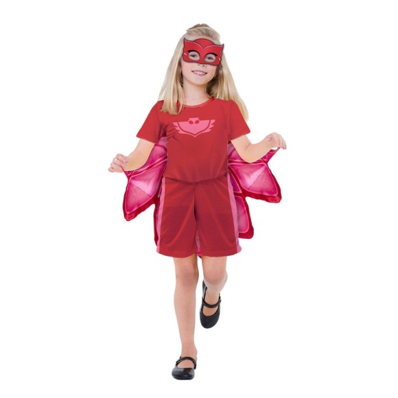 Fantasia PJ Masks Corujita Amaya Infantil modelo impecável, composta por macacão curto estampado na parte da frente, cordinhas para amarrar na parte de trás, asas e máscara em soft (Super fofinha e confortável). Fantasia 100% poliéster.