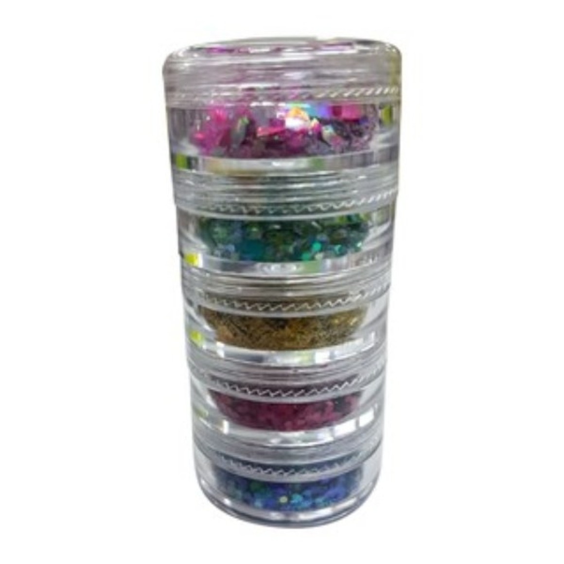 CAIXA TORRE GEL GLITTER PRIMÁRIO C/5 CORES REF.4011 ROSTINHO PINTADO