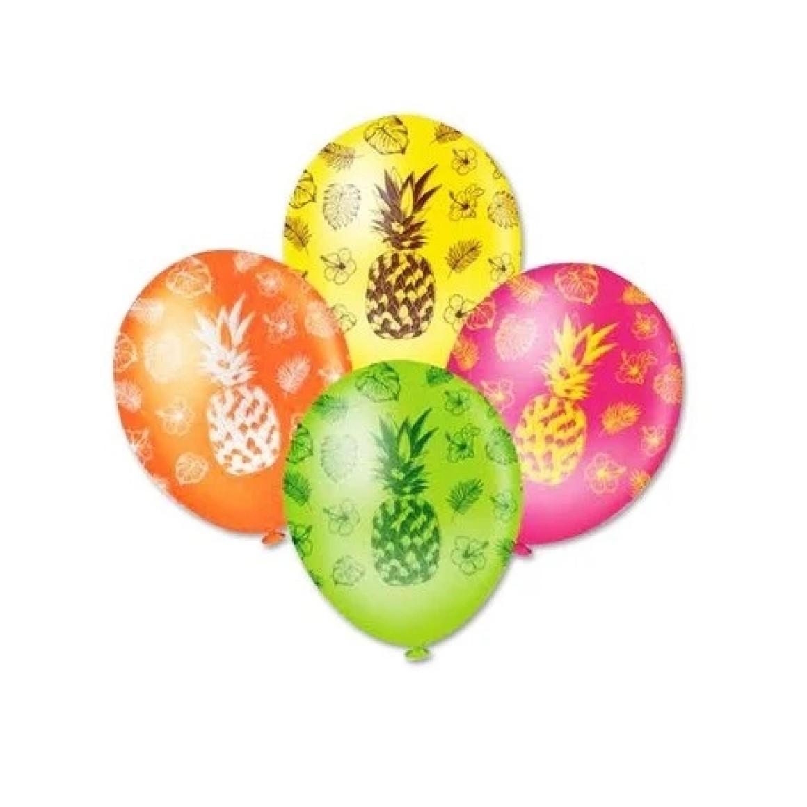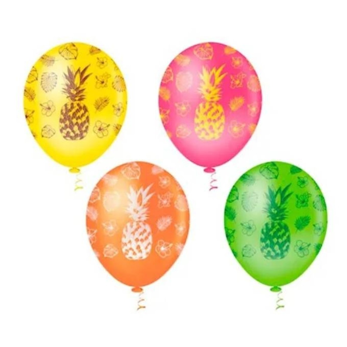 Detalhes: Tema Abacaxi sortidos em tons de verde, laranja, amarelo e vermelho Modelo: redondo Tamanho: nº 10 Tamanho com o balão cheio,aproximadamente 25cm.