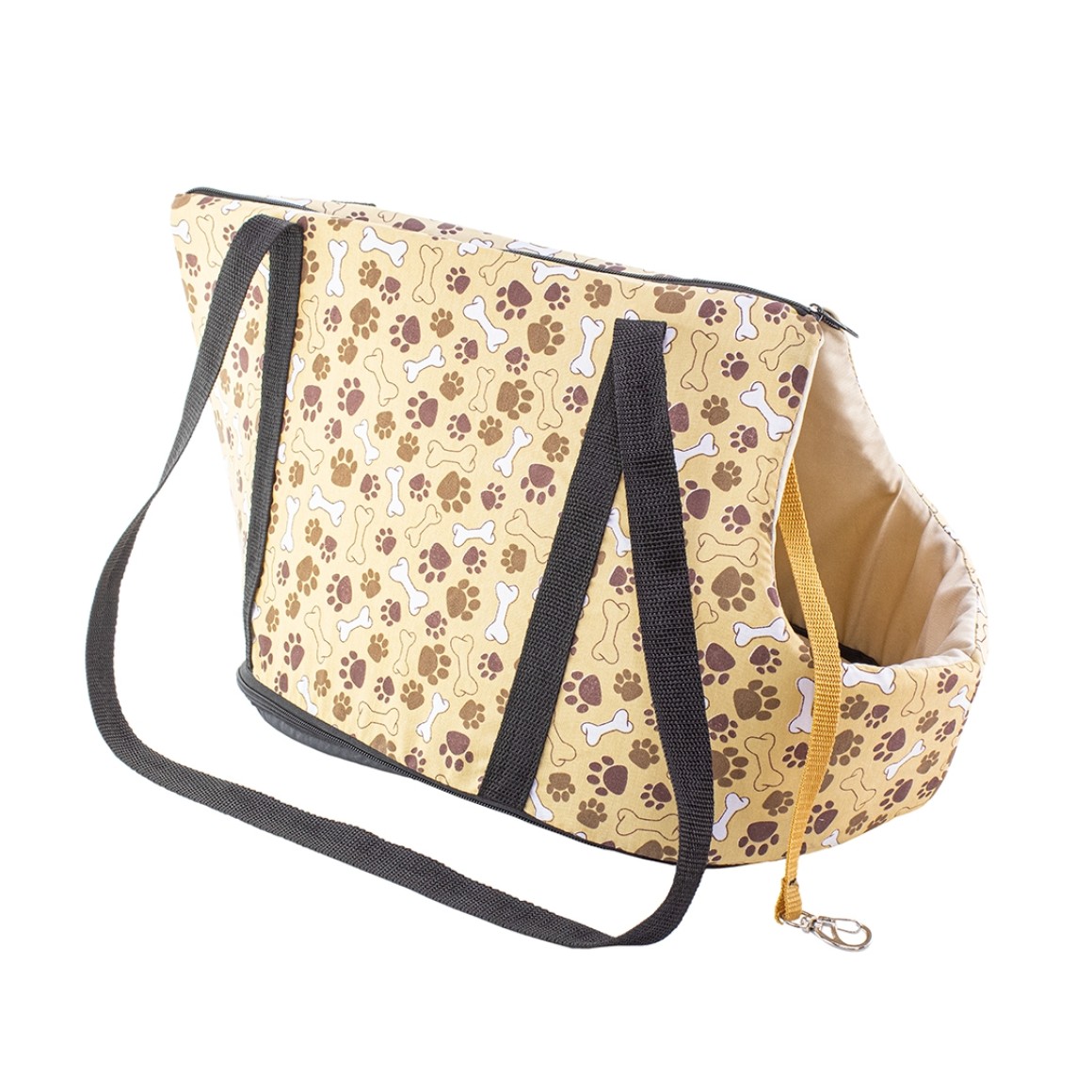 BOLSA TRANSPORTE PET N3 BEGE COM PATINHAS MARROM