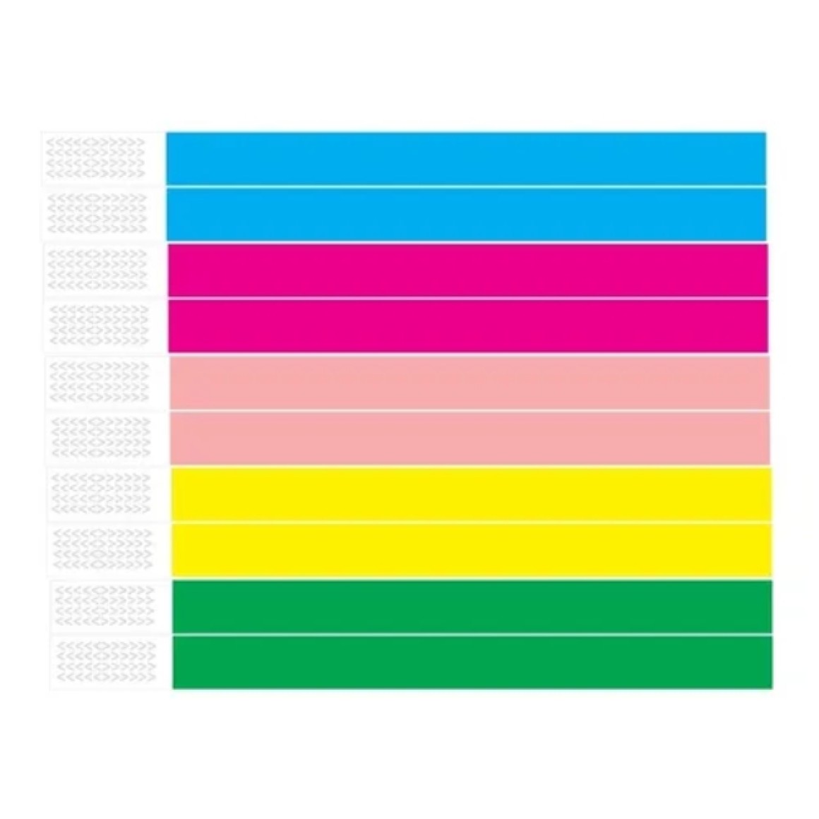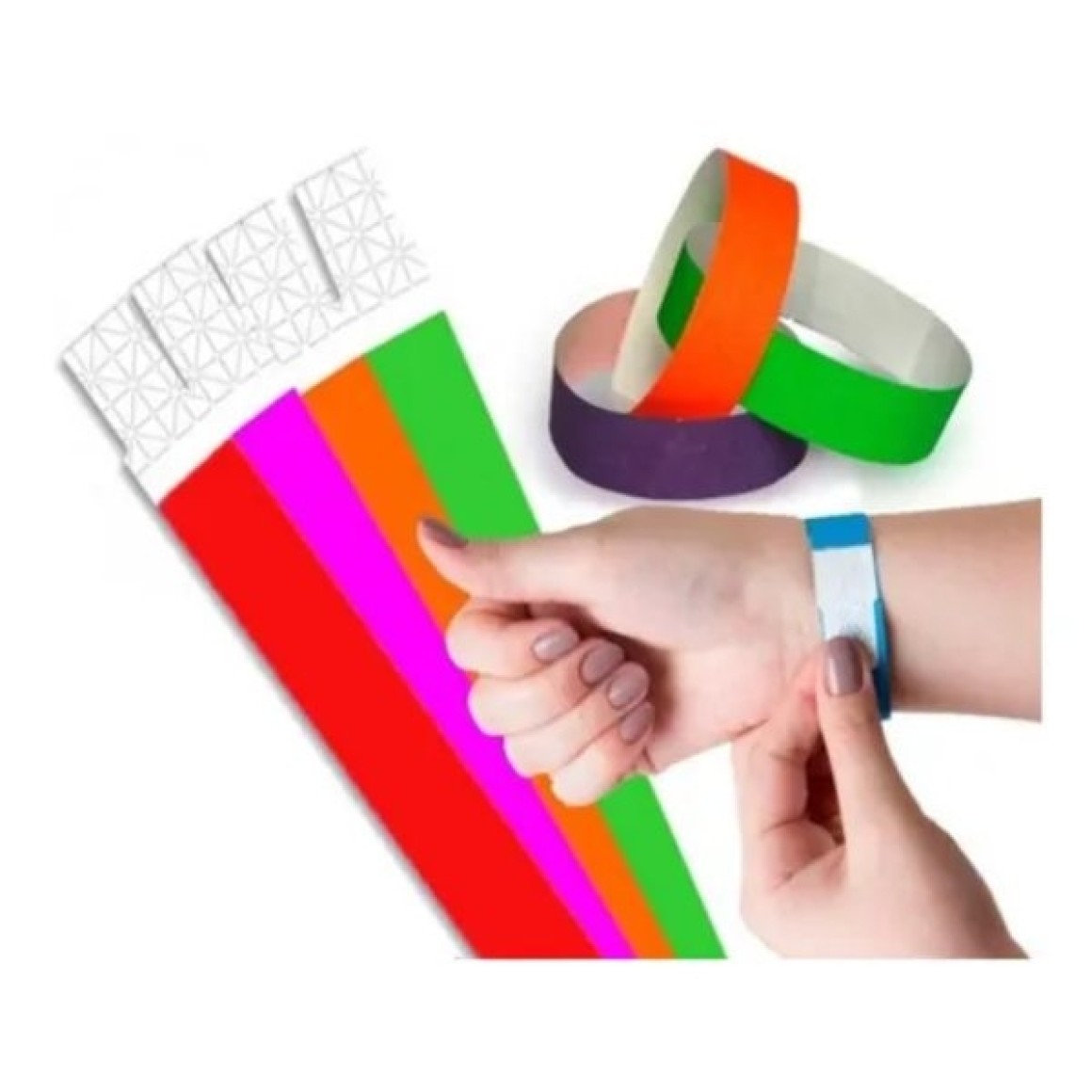 As pulseiras são confortáveis e de fácil aplicação, confeccionadas em Tyvek com um inovador sistema de adesivo com meio corte de segurança no lacre dificultando sua retirada durante o uso.
