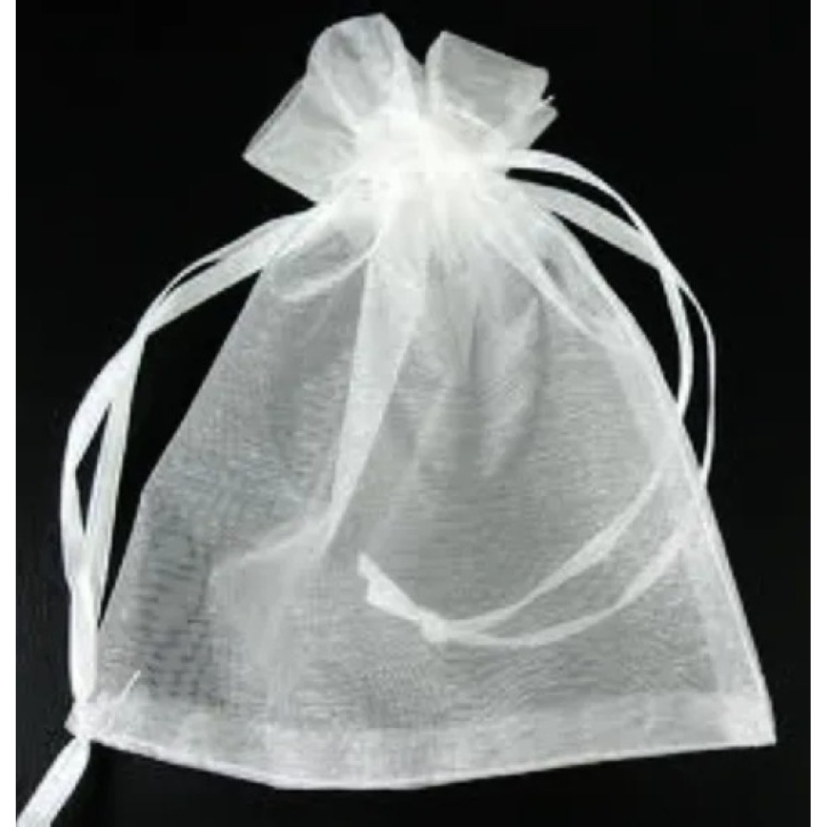 Confeccionado com material importado com fácil fechamento com fita de cetim no acabamento da cor do saquinho .