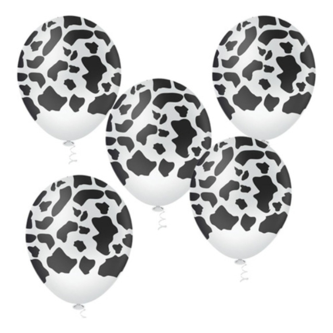 BALÃO 10 COM 25 UNIDADES DECORAÇÃO VACA MALHADA BRANCO E PRETO PIC PIC