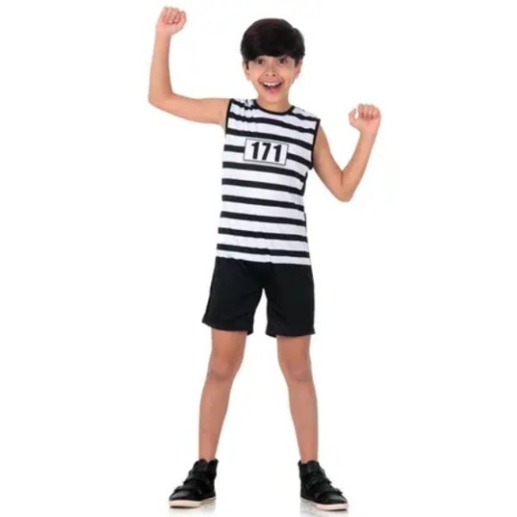Fantasia Prisioneiro Infantil, confeccionada em tecido confortável. Fabricada pela Sulamericana em tecido 100% poliéster, composta de macacão curto. Aproveite e divirta-se