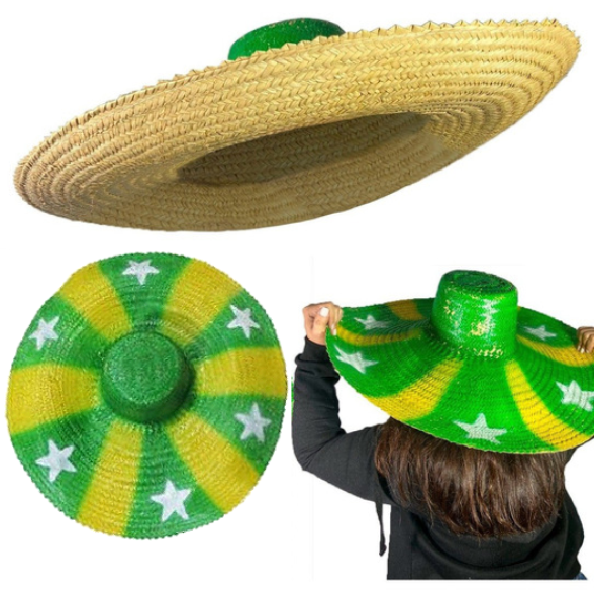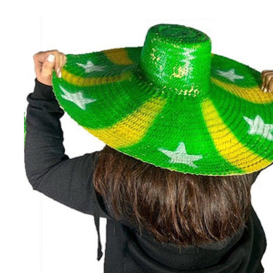 Chapéu de palha, estilo mexicano com as cores verde e amarelo, muito utilizado na copa