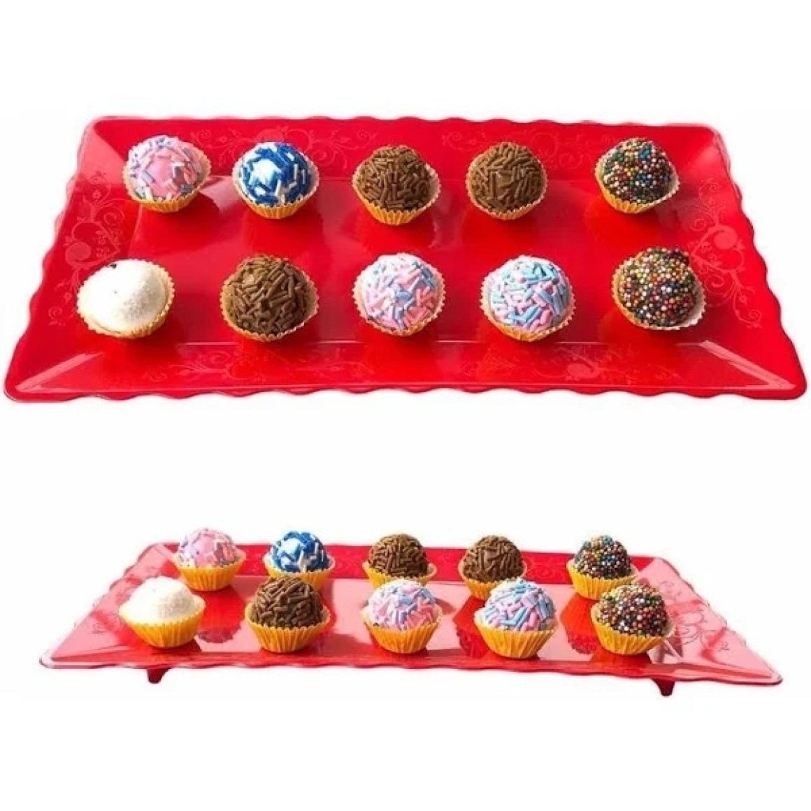 Bandeja retangular em plástico, perfeita para usar na decoração de sua festa.