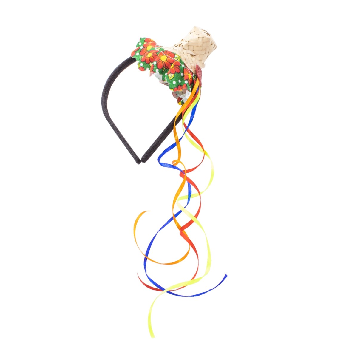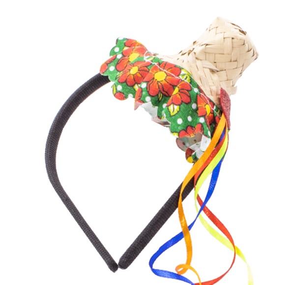 Chapéu mini tecido C/ Tiara com tema de Festa Junina, ideal para acessório de sua fantasia de arraial.