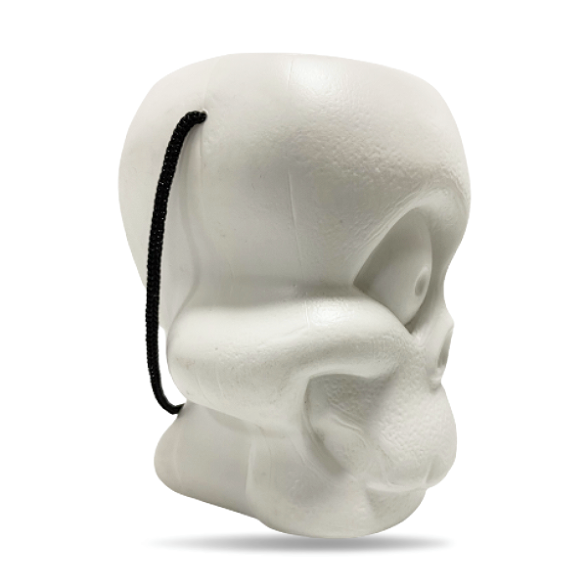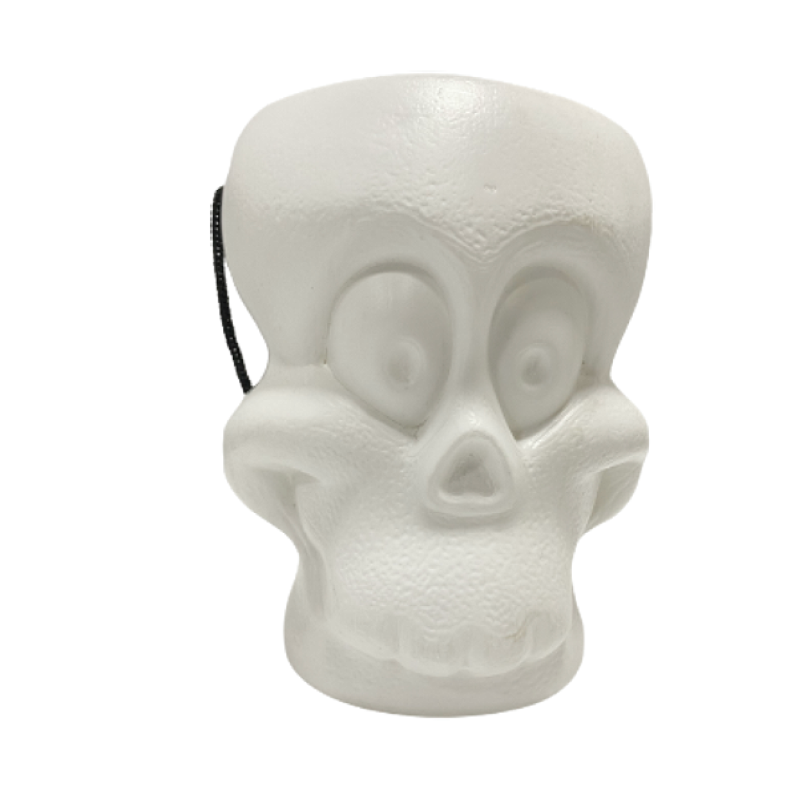 Pote em formato de caveira com alça, pode ser utilizado como porta objetos, baleiro ou decoração para incrementar o seu Halloween.
