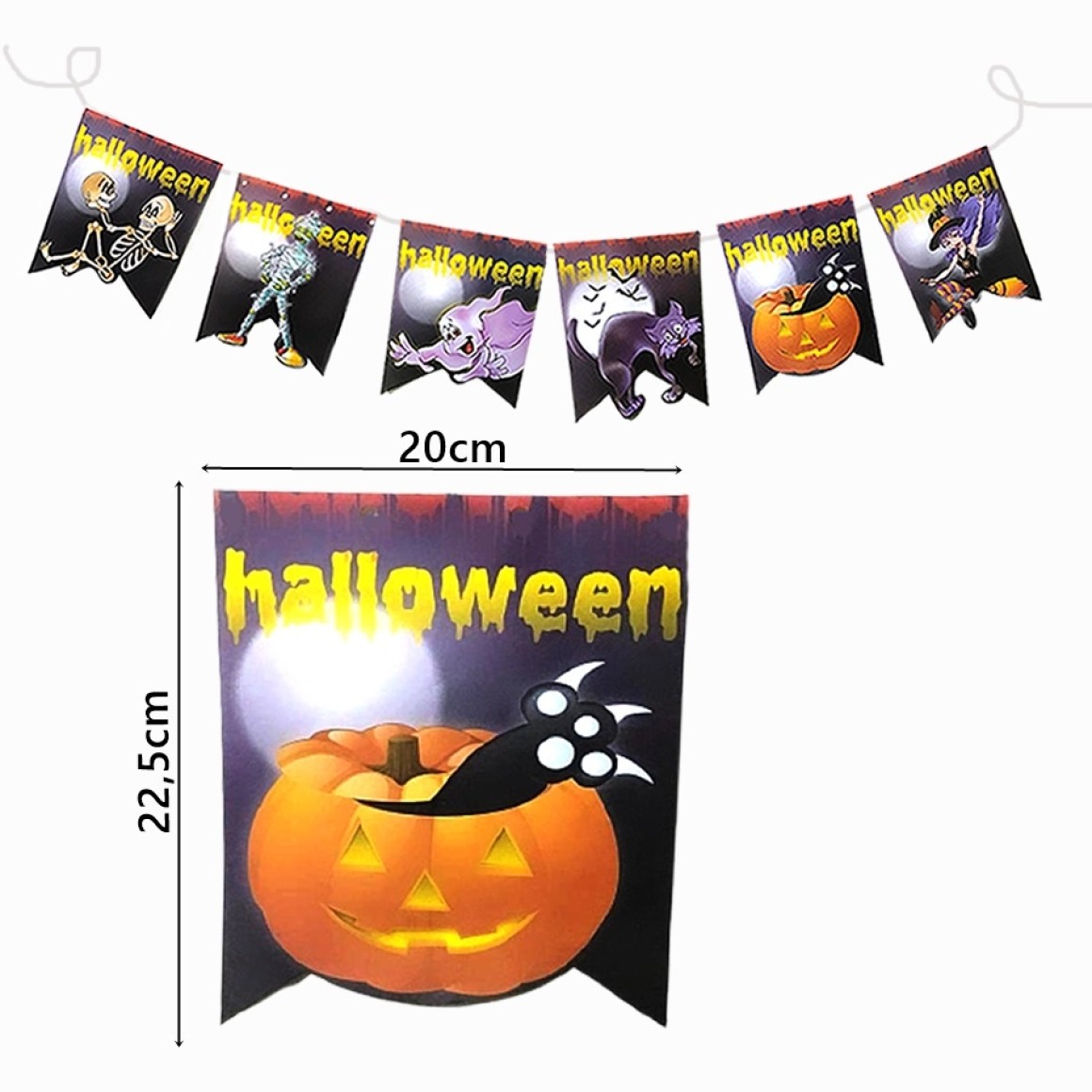 5 METROS - VARAL BANDEIRA HALLOWEEN C/10 UNID - KIN FESTAS