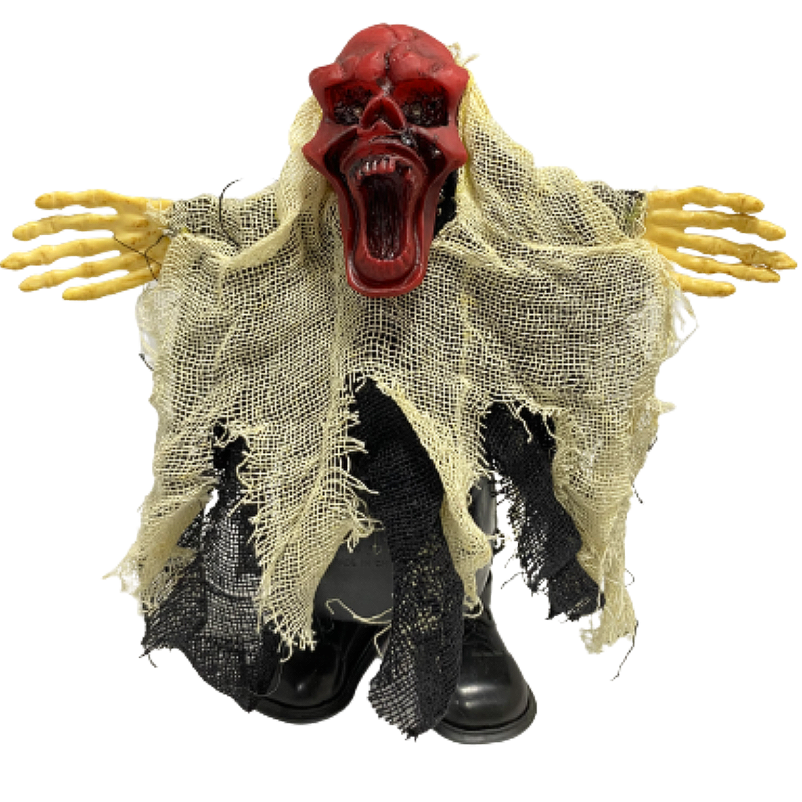 Boneco Elétrico Caveira Fantasma Boca Aberta Olhos de LED e Movimentos