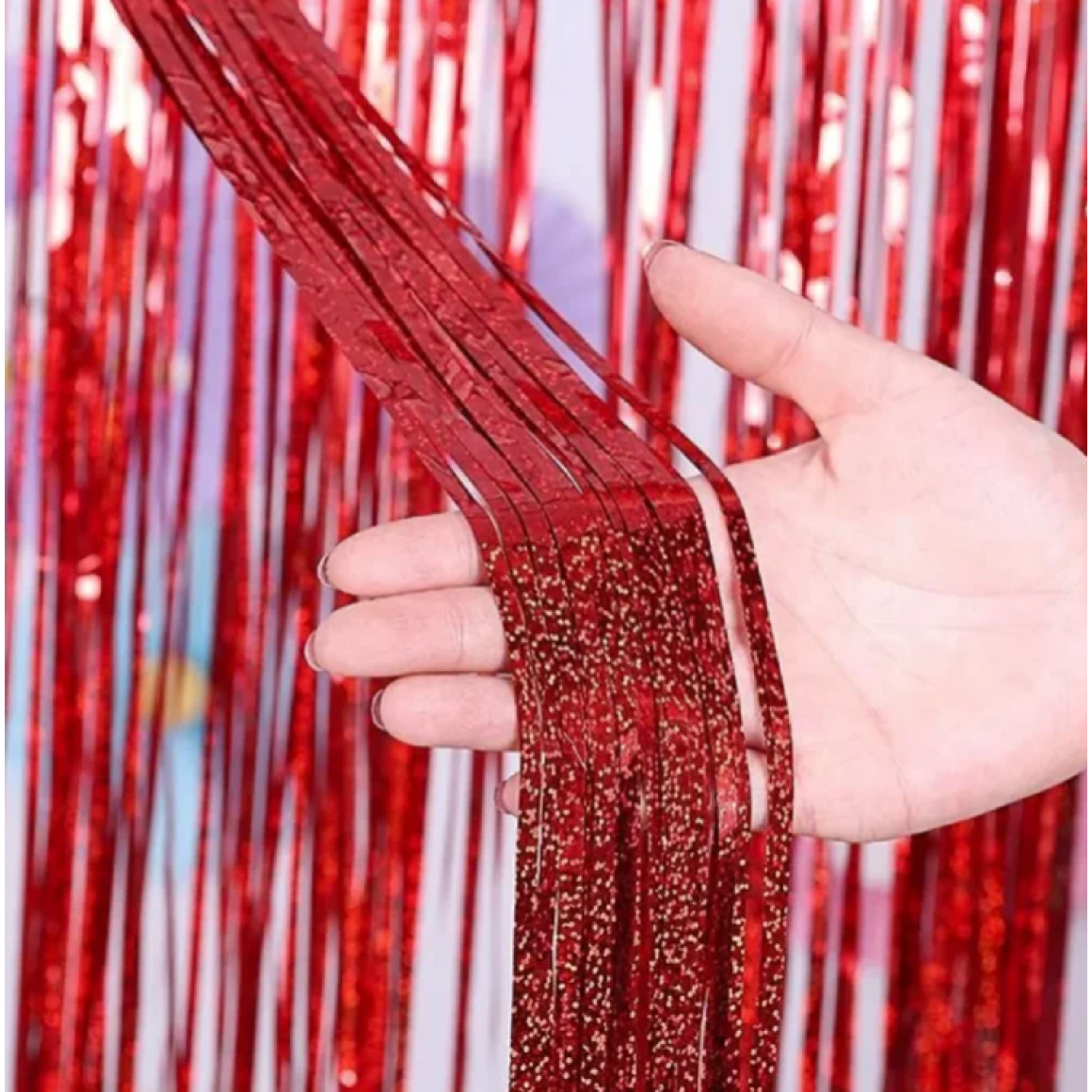 CORTINA METALIZADA ENFEITE VERMELHA 1M x 2M - KIN FESTAS