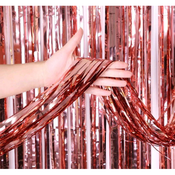 CORTINA METALIZADA ENFEITE OURO ROSE 1M x 2M - KIN FESTAS