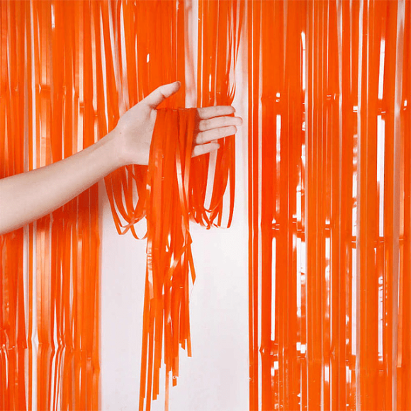 CORTINA METALIZADA ENFEITE LARANJA 1M x 2M - KIN FESTAS