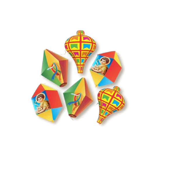 Os Balões são fabricados em papel cartonado e possuem cores alegres como verde, laranja,amarelo e vermelho. São ideais para serem colocados na decoração de Festa Junina ou presos ao lado das bandeirinhas, além disso, possuem diversas imagens e formatos.