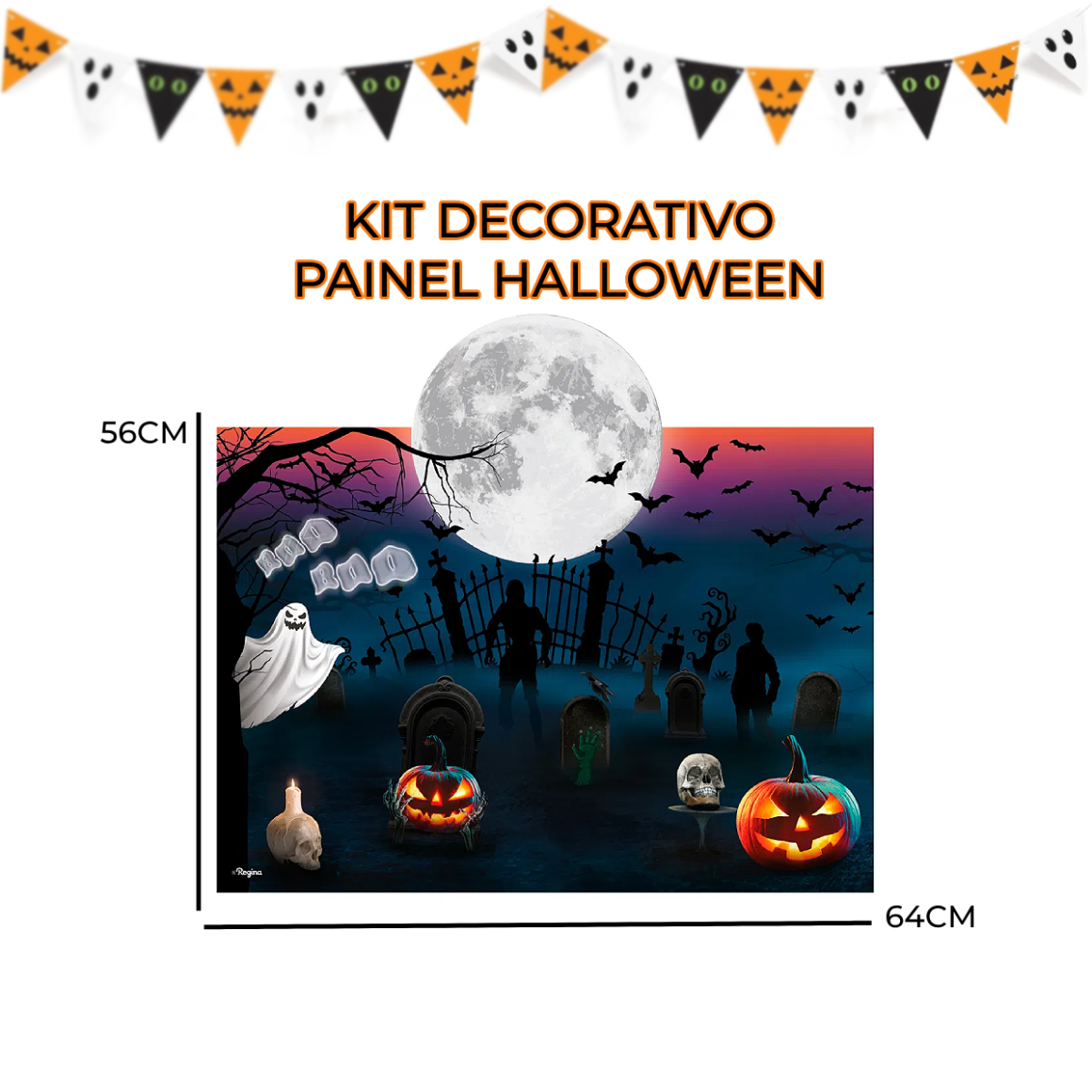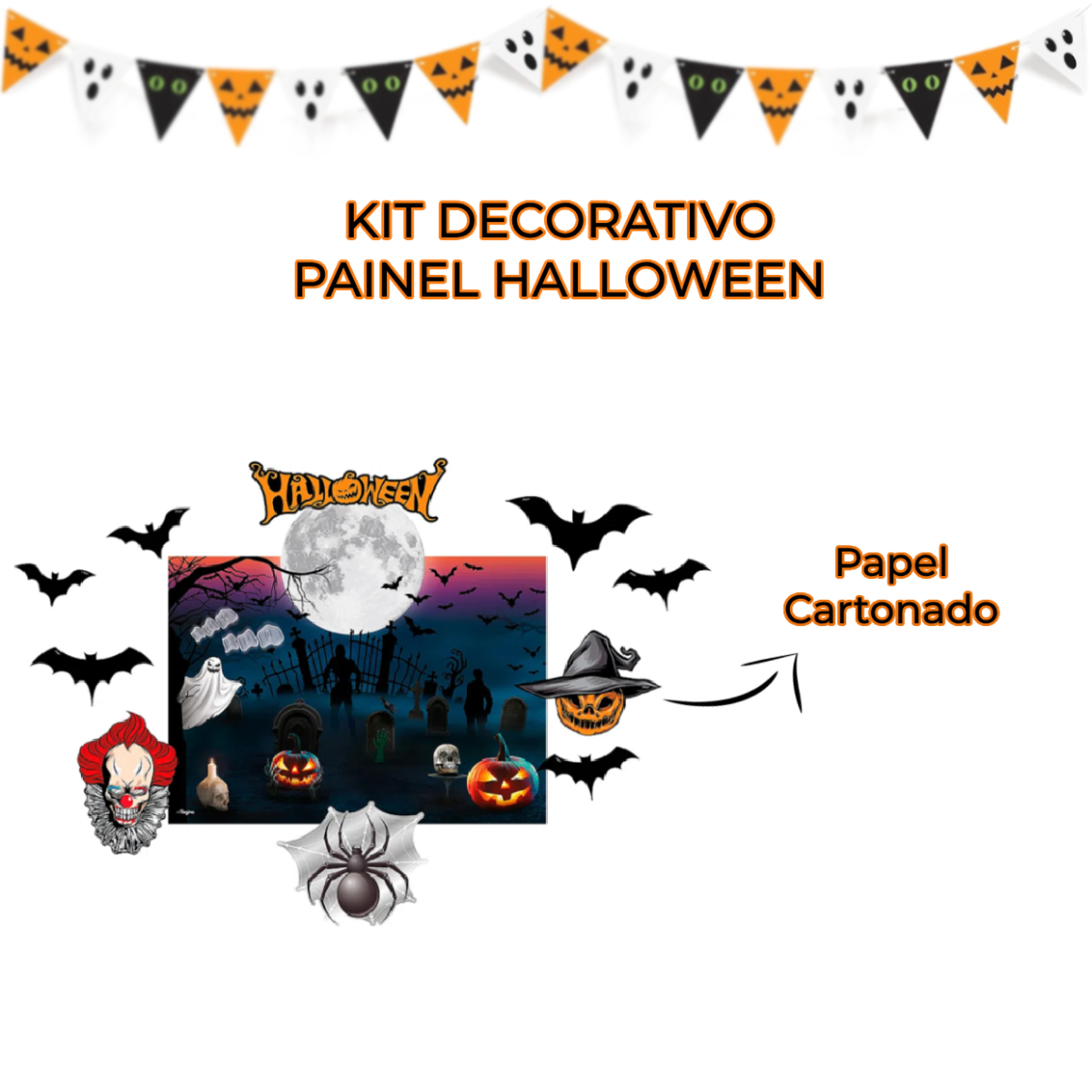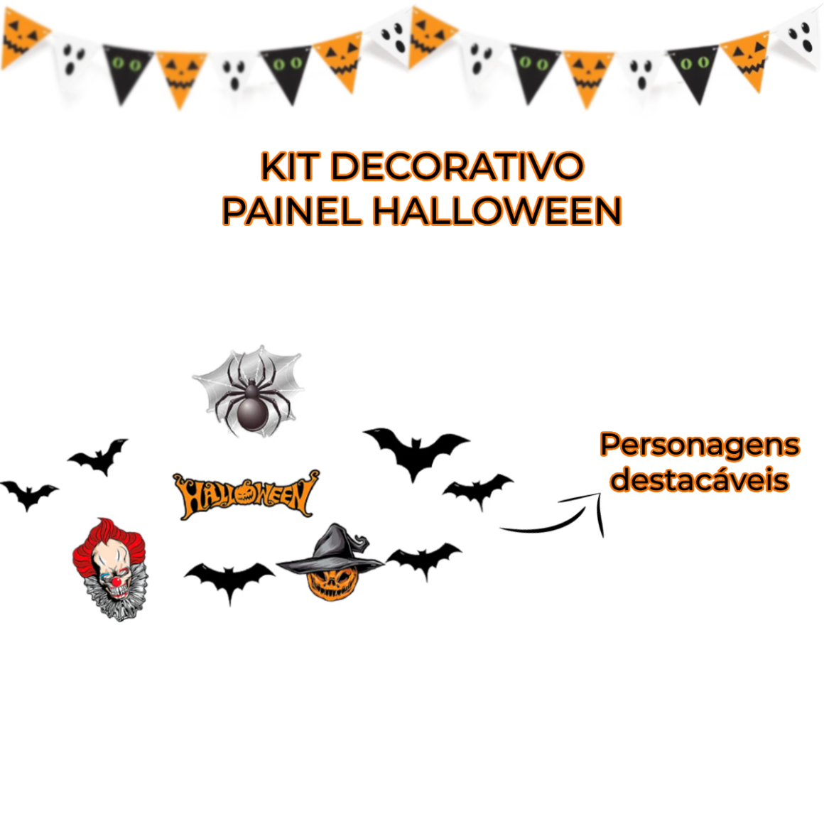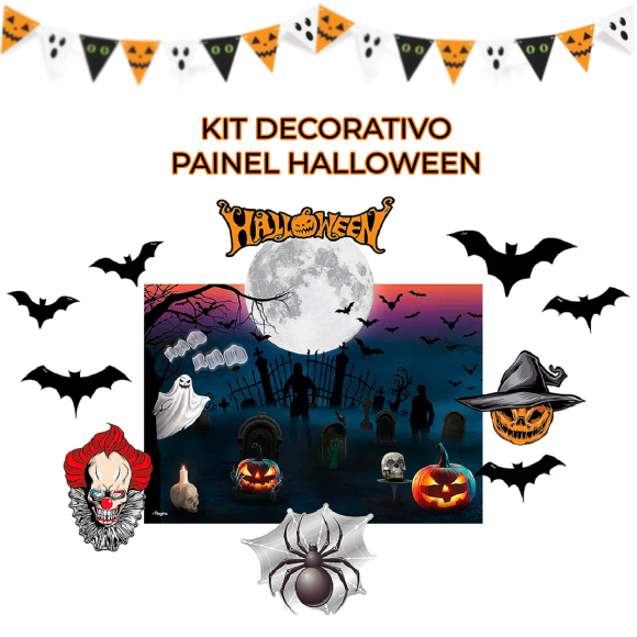 tem imagens vibrantes de alta qualidade que remetem ao Halloween. São ideias para utilizar na decoração da parede, combinando com o tema da festa.