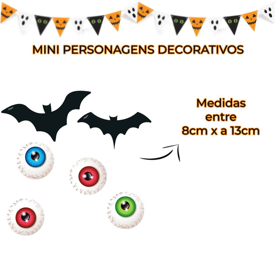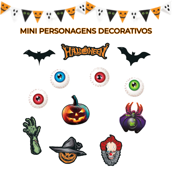 Mini Personagens Decorativos, eles são perfeitos para decorar mesas de festas, lembrancinhas, ou surpresas, todas na temática de Halloween, e prometem deixar sua festa temática ainda mais assustadora e criativa!