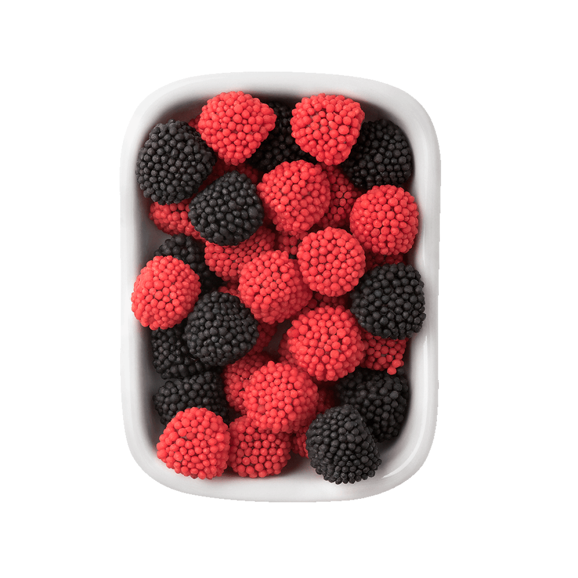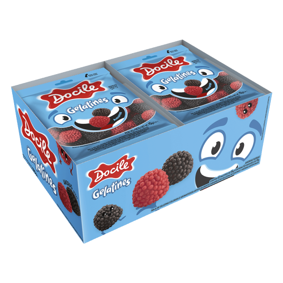 As mini amoras, além de lindas, são gostosas igual fruta direto do pé! As vermelhas são de frutas vermelhas e as pretas de blueberry! Cada caixa tem 12 pacotes de 15g.