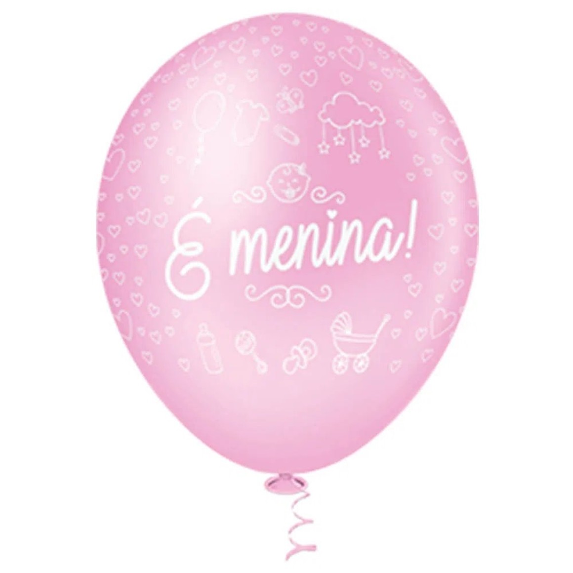 - Balão de Festa Látex 10 Decorado Menina Rosa Baby Branco – 25 Unidades - Balões Pic Pic - Kin Festas