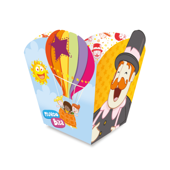 Cachepot decorado Mundo Bita em papel cartonado leva o tema da festa com detalhes da decoração valorizando o ambiente.