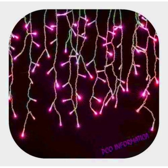 Cascata com 240 lâmpadas de led 110v macho e fêmea na cor rosa com 10 metros.