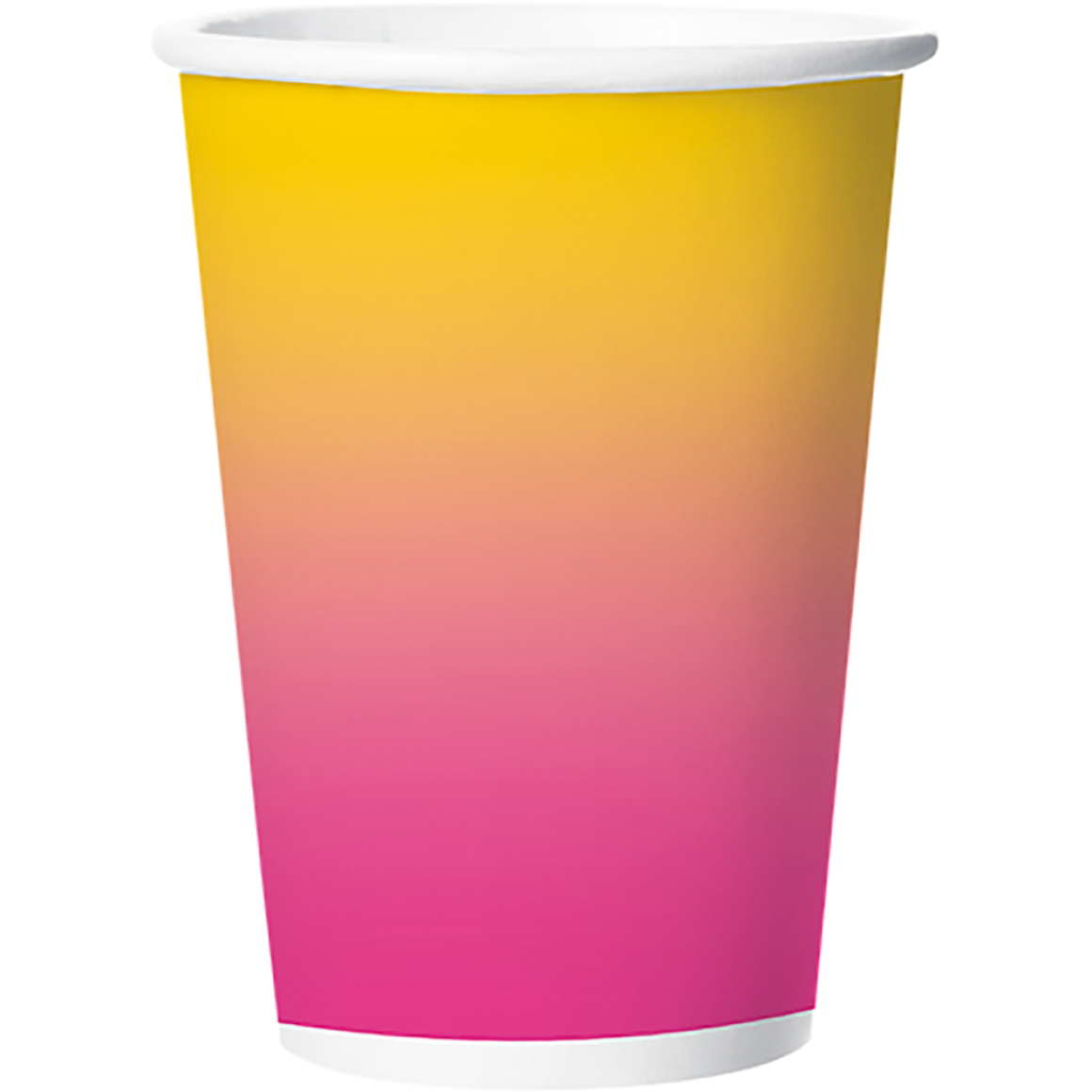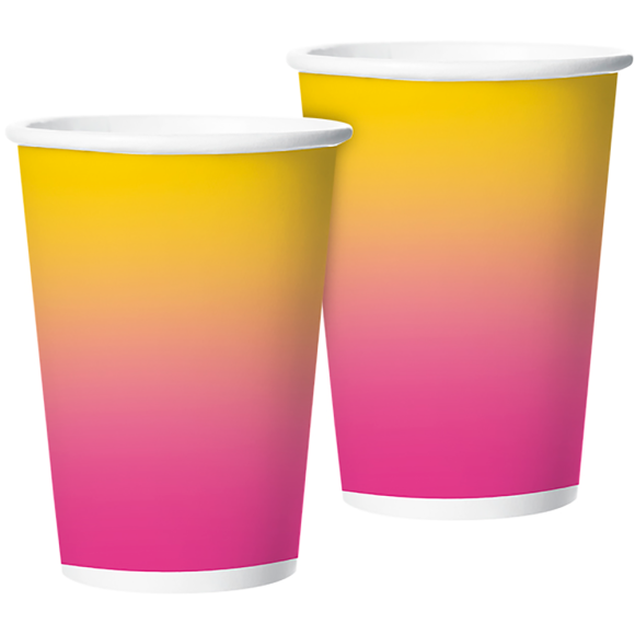 COPO PAPEL 180 ML FESTA COLORS OMBRE ROSA AMARELO COM 8 REGINA