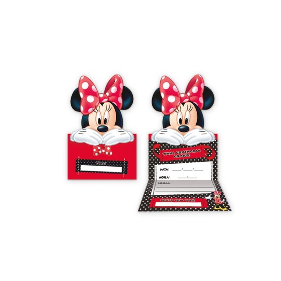 CONVITE GRANDE RED MINNIE C/8 - KIN FESTAS