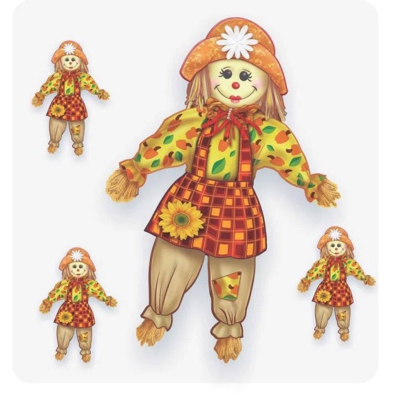 O Kit Espantalha é fabricado em papel cartonado, com alta qualidade de impressão.É composto por Espantalhas coloridas em dois tamanhos diferentes, sendo uma maior e outras três menores.