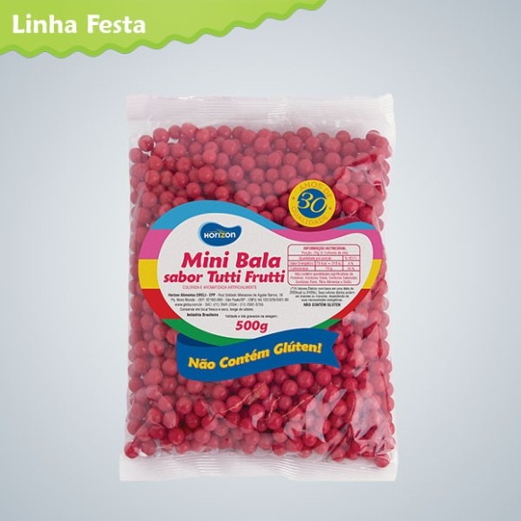 MINI BALA TUTTI FRUTTI VERMELHA 500G HORIZON