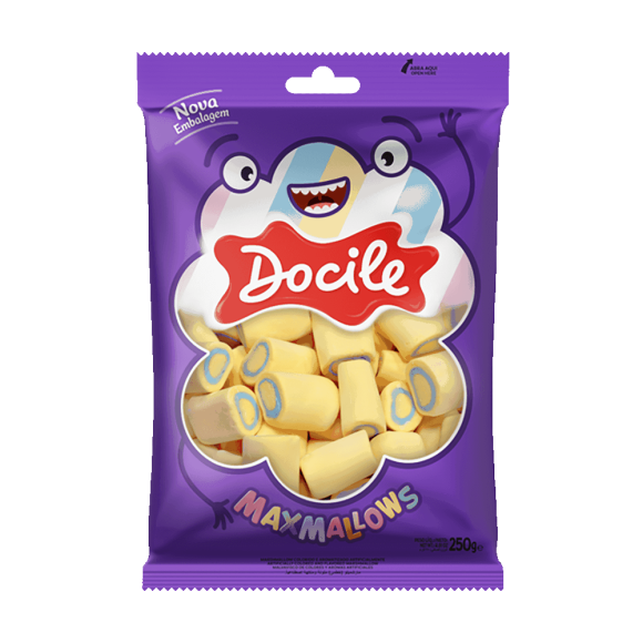 Os MaxMallows Docile fazem a alegria de todos, são extremamente macios e super deliciosos, com um sabor delicado e surpreendente, cores suaves e formatos que vão dos tradicionais aos divertidos.