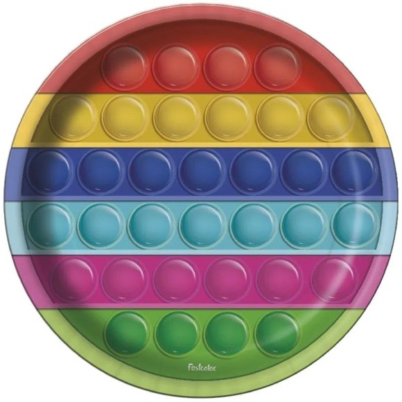 Este novo lançamento Pop It é o preferido de todas as crianças, entre outros. É a festa do momento , com os mais criativos itens decorativos com cores: Azul, Laranja, Verde, Amarelo, Roxo, Verde, Vermelho, lembrando um Arco-íris. Sua festa vai ficar incrível com essa novidade .