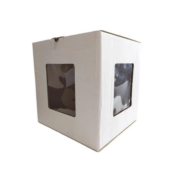 Caixa para bolos com visor duplo com excelente material. É uma embalagem destinada para proteger os bolos de vazamentos e manter a integridade do mesmo, sem alterar a qualidade e o aroma do alimento.