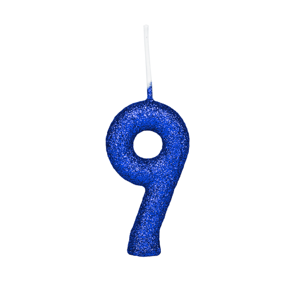 VELA CINTILANTE GLITTER AZUL NÚMERO 9 REGINA
