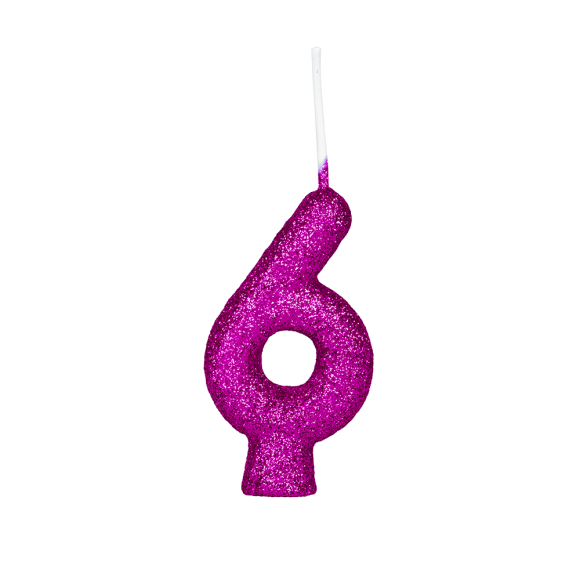 VELA CINTILANTE GLITTER PINK NUMERO 6 REGINA