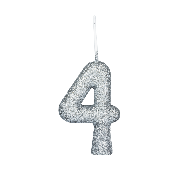 VELA CINTILANTE GLITTER PRATA NUMERO 4 REGINA