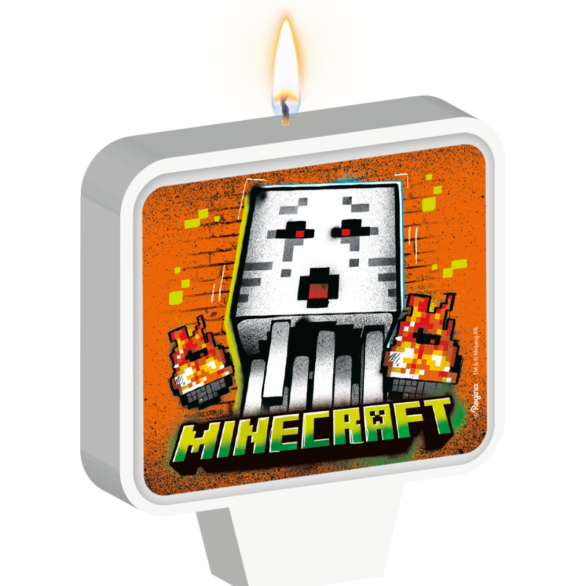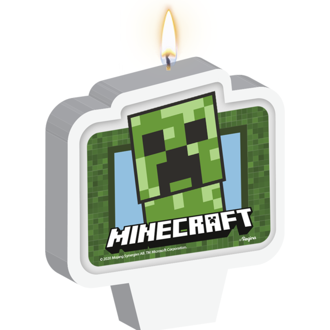 A festa fica completa com a vela plana adesivada do tema Minecraft! Feita em parafina e com um adesivo exclusivo aplicado, a vela plana também decora o topo do bolo.